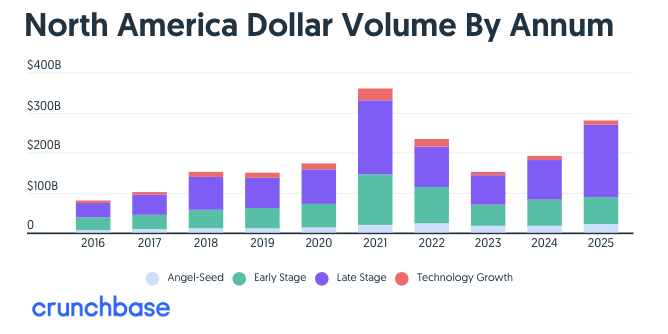 North American Startup Funding Soared 46% In 2025, Driven By AI Boom (Crunchbase, 4 minute read)