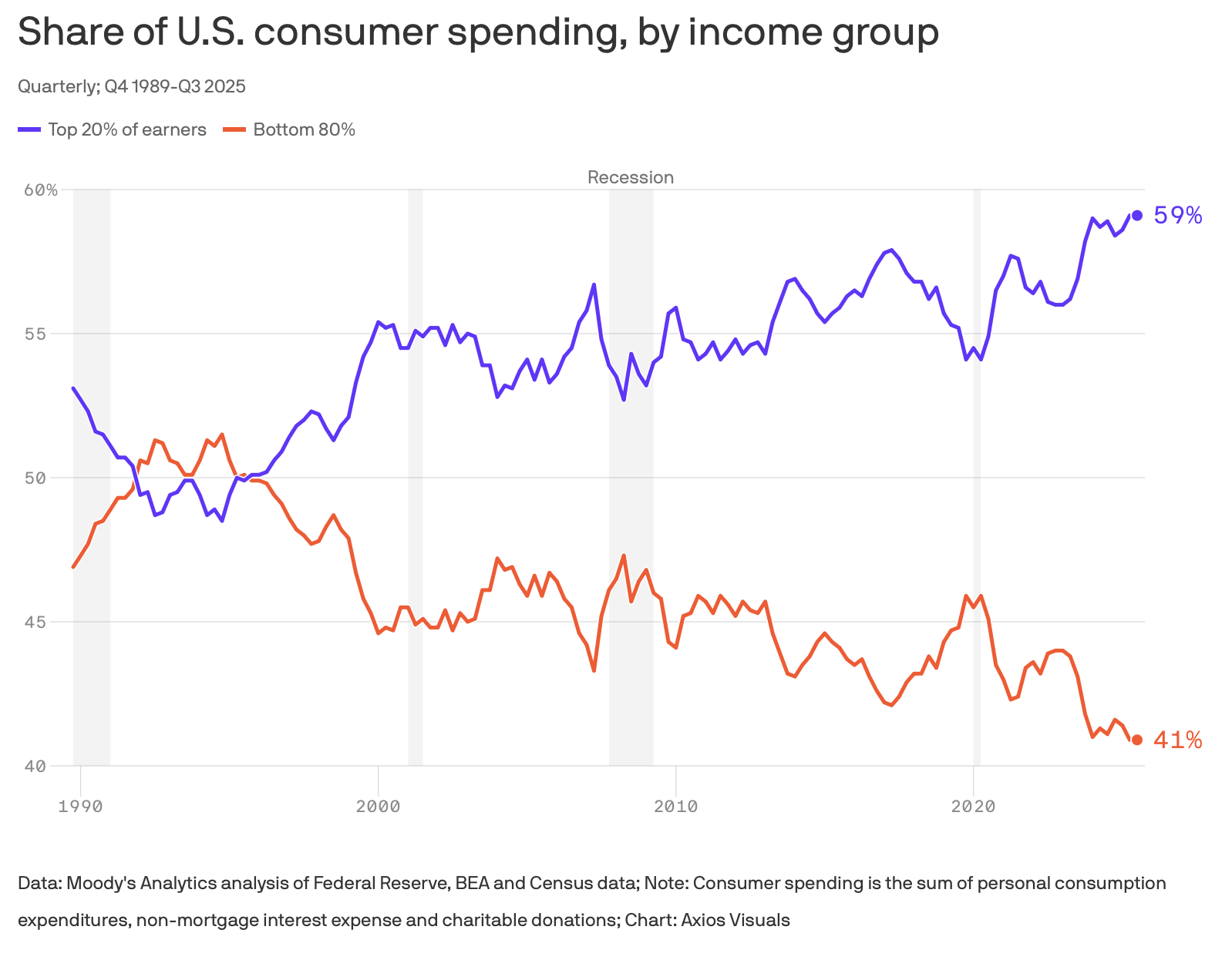 The rich are powering spending, with the U.S. economy in a danger zone (Axios, 3 minute read)