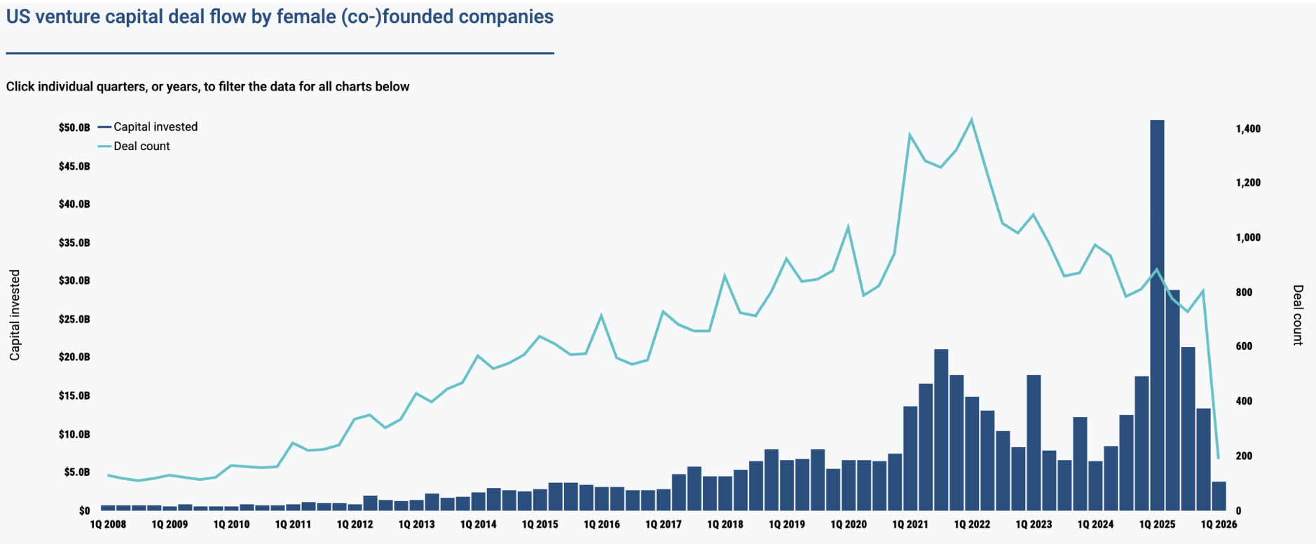 US VC female founders dashboard (PitchBook, 5 minute read)