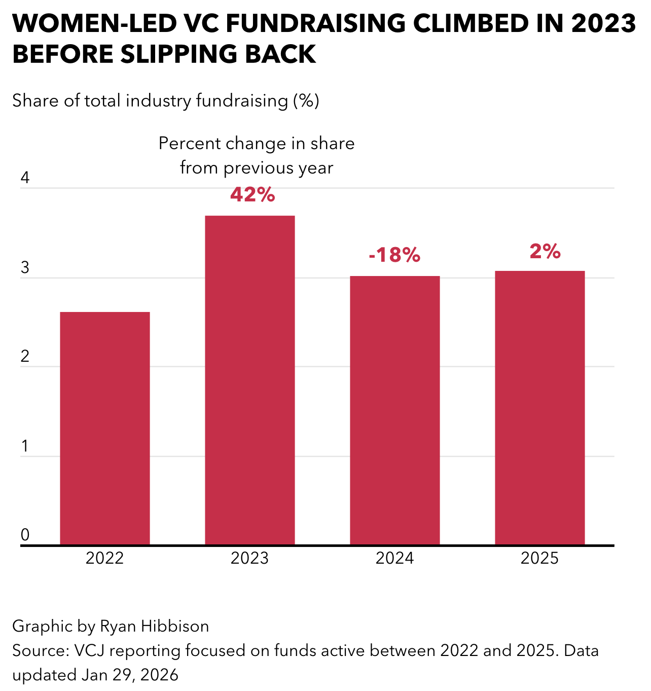 Data Deep Dive: Number of new women-led fund launches hits 15-year low (Venture Capital Journal, 4 minute read)
