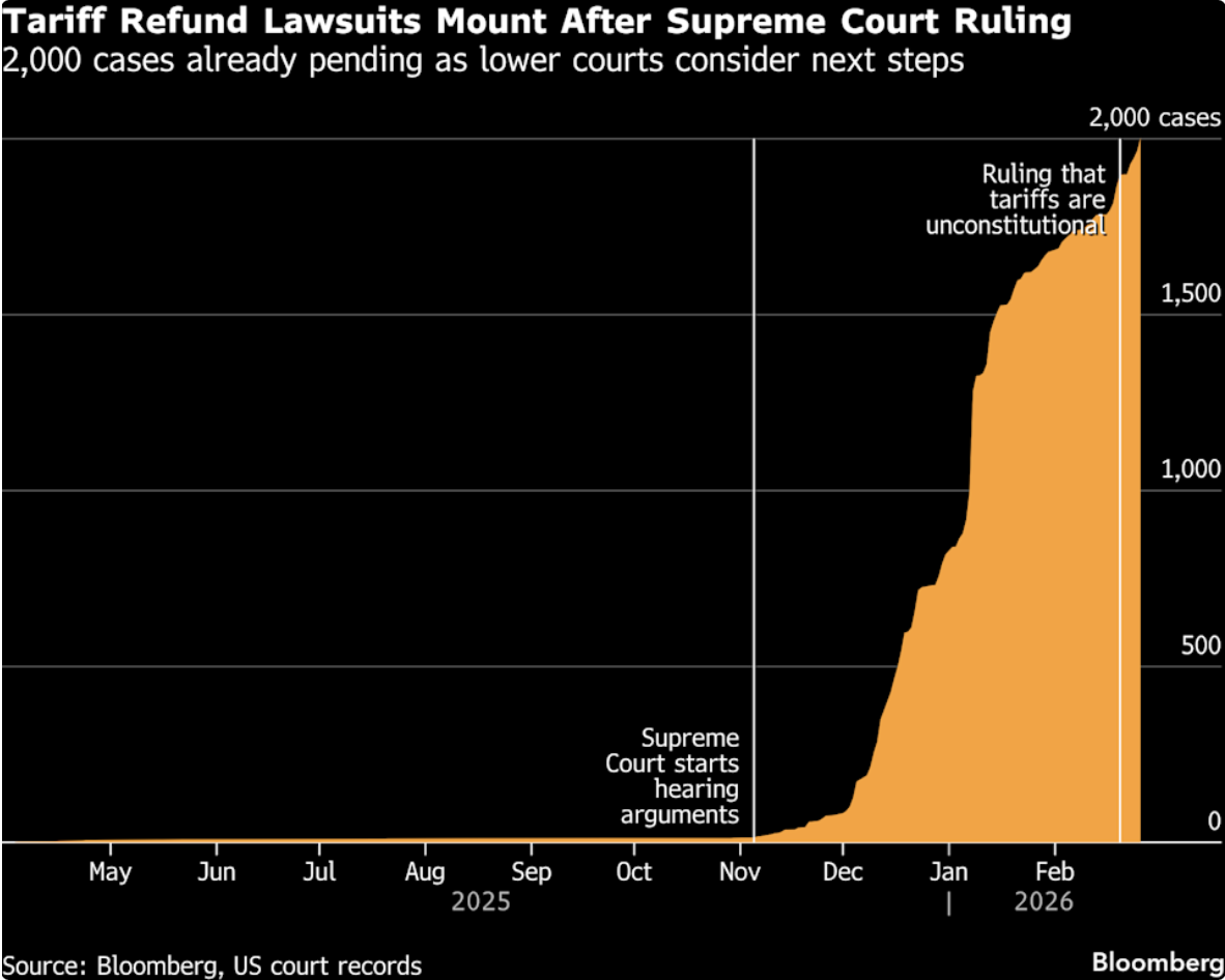Trump Faces 2,000 Tariff Lawsuits Following Supreme Court Loss (Bloomberg via Yahoo Finance, 4 minute read)