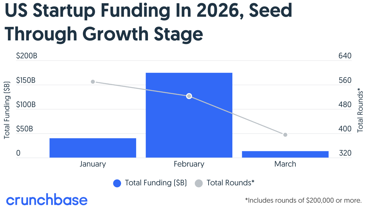 US Startup Funding Slows Sharply In March (Crunchbase, 3 minute read)