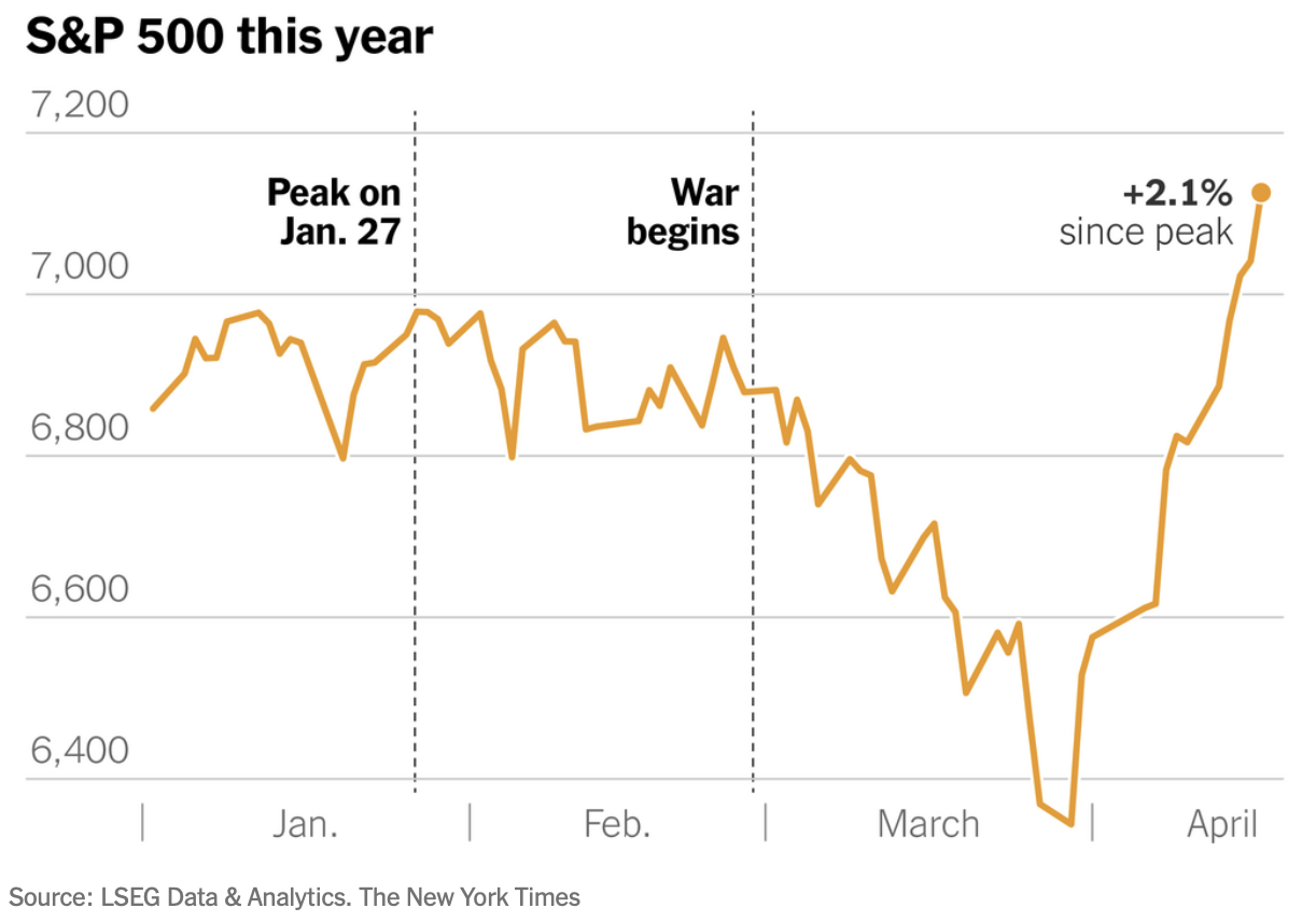 Messy War, Happy Stock Markets (The New York Times, 6 minute read)